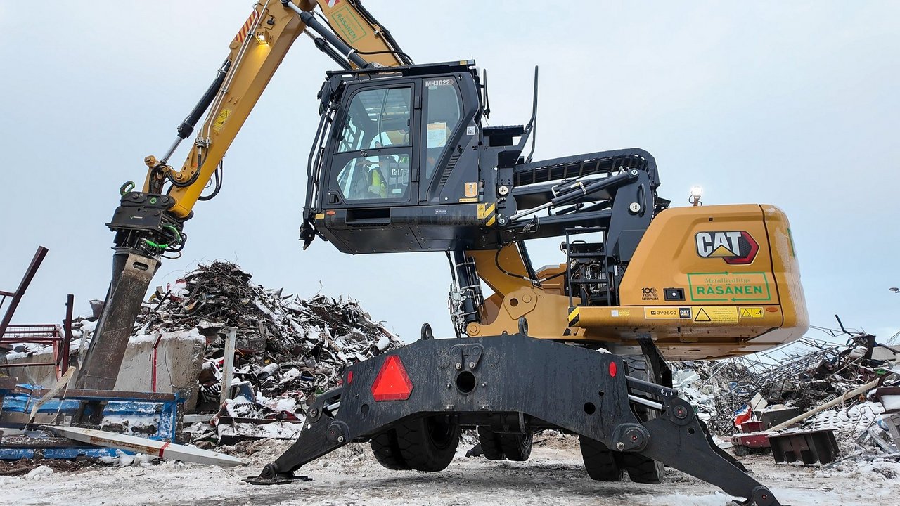 Kuopion kaatopaikan kupeessa, toimii yli kolmen vuosikymmenen kokemuksella Metallivälitys Räsänen Oy. Yritys on erikoistunut metallinkierrätykseen: romumetallin vastaanottoon, lajitteluun, käsittelyyn ja edelleen toimittamiseen. Työ on vaativaa, ympäristö vaihteleva ja tehokkuus ratkaisee – siksi konekalustolta vaaditaan paljon. Uusin hankinta, Caterpillar MH3022 -materiaalinkäsittelykone, on noussut nopeasti keskeiseen rooliin yrityksen toiminnassa. Kone on ensimmäinen taloon uutena hankittu Caterpillar.
